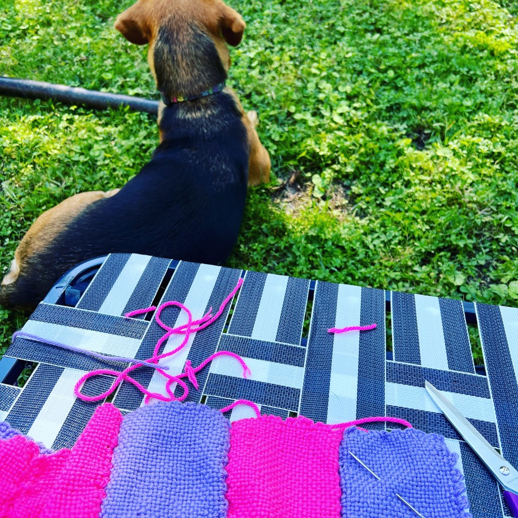 I set up my lounge chair on a sunny day and stitched them all together- right sides together, stitched through both loops using the tails I had left on and then pulling the yarn through the seam to secure. It only took me a couple of hours to get caught up from when it started on August 19th.
