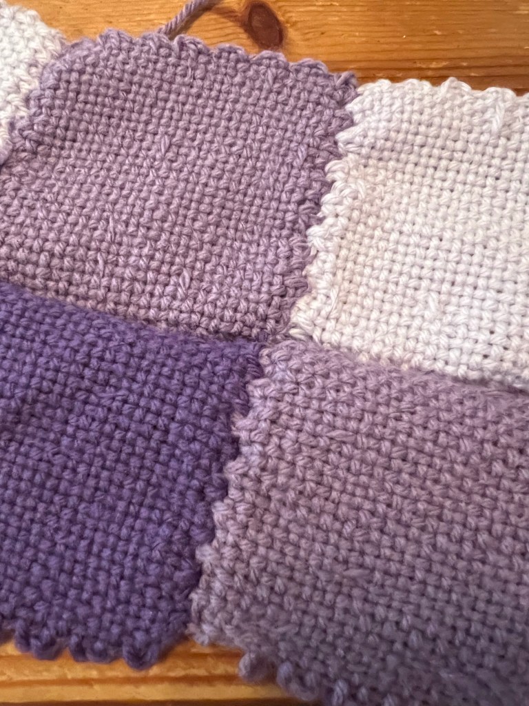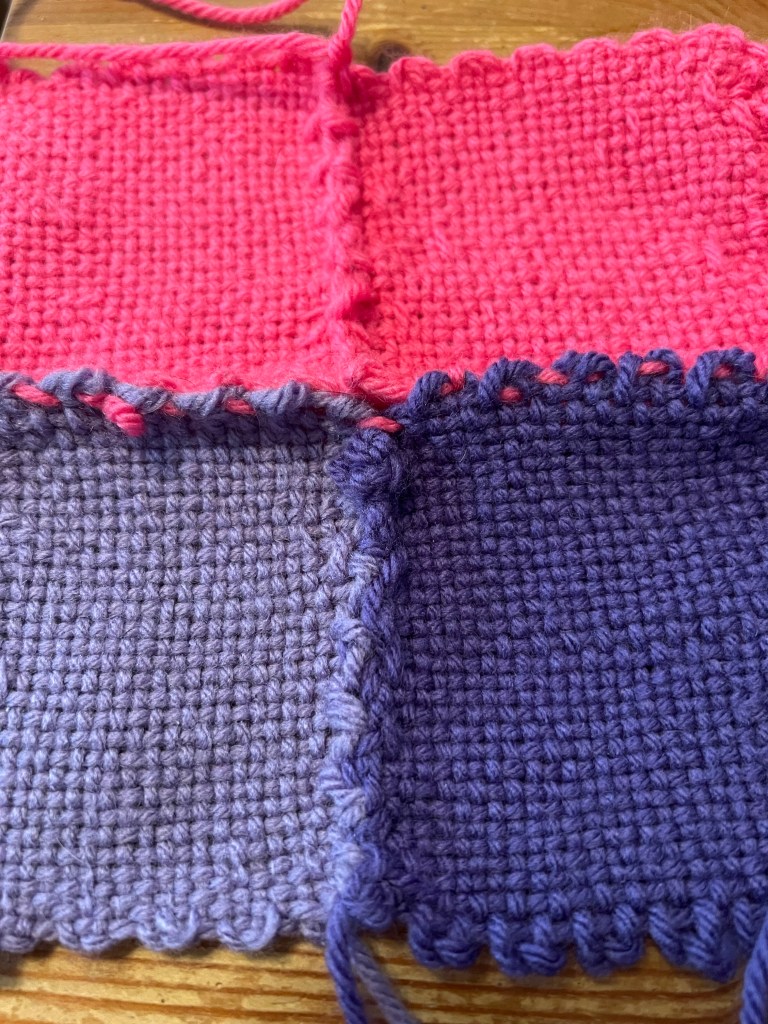 After the angst of my last post, I decided not to do a decorative crochet join with the squares. I practiced it a lot and got the hang of it but it was so long and tedious. If I was making a small blanket or wall hanging, I’d go for it but it was driving me bananas and that is not the purpose of this project!