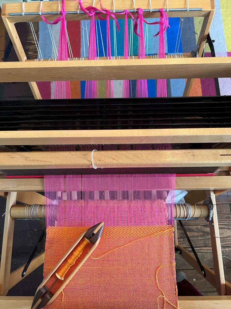 I’m happy with how it came out! I did random strips of twill and then plain weave because my goal was to finish in class. We have access to the studio for the rest of the month but since I have my own looms, I don’t really need that. I know one of the other students wants to do a small second project and another wasn’t able to attend much of the classes so she has to catch up.