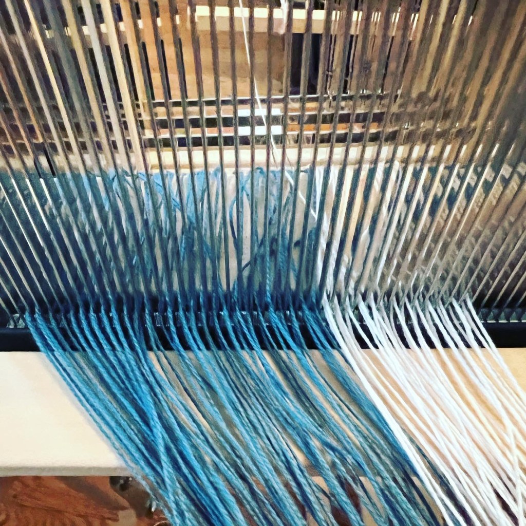 […] it arrived I warped up my loom which was very tedious because both the heddles and the reed had to be double threaded because the […]
