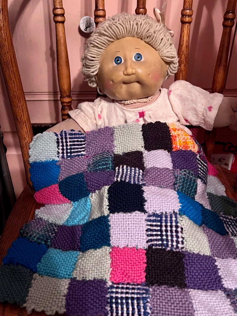 I did a random order, no temperature tracking! It’s a little silly to make my old doll a blanket but why not? It was a tiny project. I don’t know any children or I’d make more!