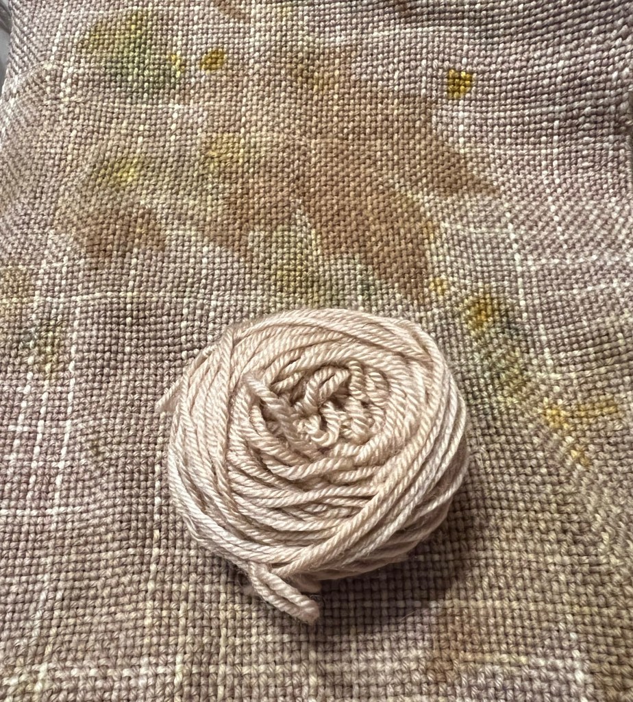 You can see how much lighter the yarn is than even the blank spots on the scarf. I think it would have looked better with more contrast. I thought the alum might change it a bit but I wasn’t expecting it to be so much darker and muted, everything I read said that alum “brightens” color while iron darkens it which is why I used alum. I would not call this “bright”.