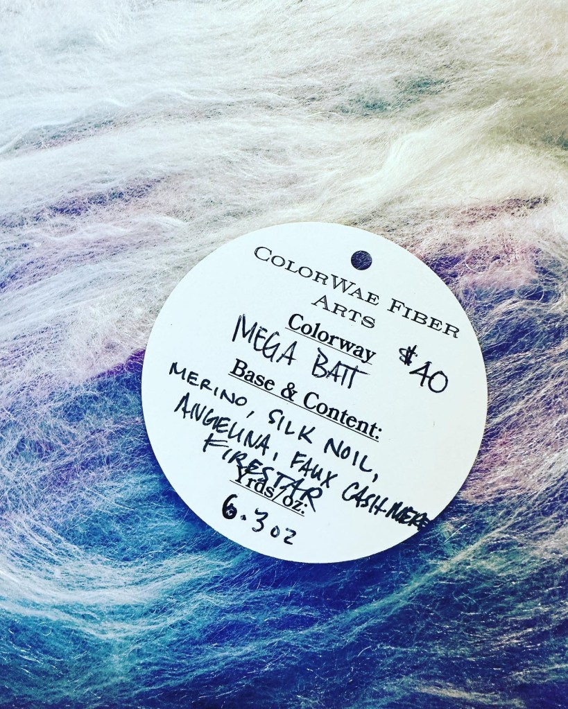 The batt was sort of unicorn colored so I got a multicolor cotton yarn to spin it with in similar colors. That Michael’s had but no black yarn.