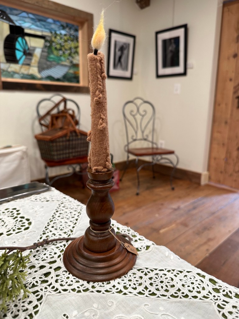 Today we took a felting class at Manor Mill. When I took my basket weaving class there I saw these felted candles for sale and was tempted but didn’t get them.