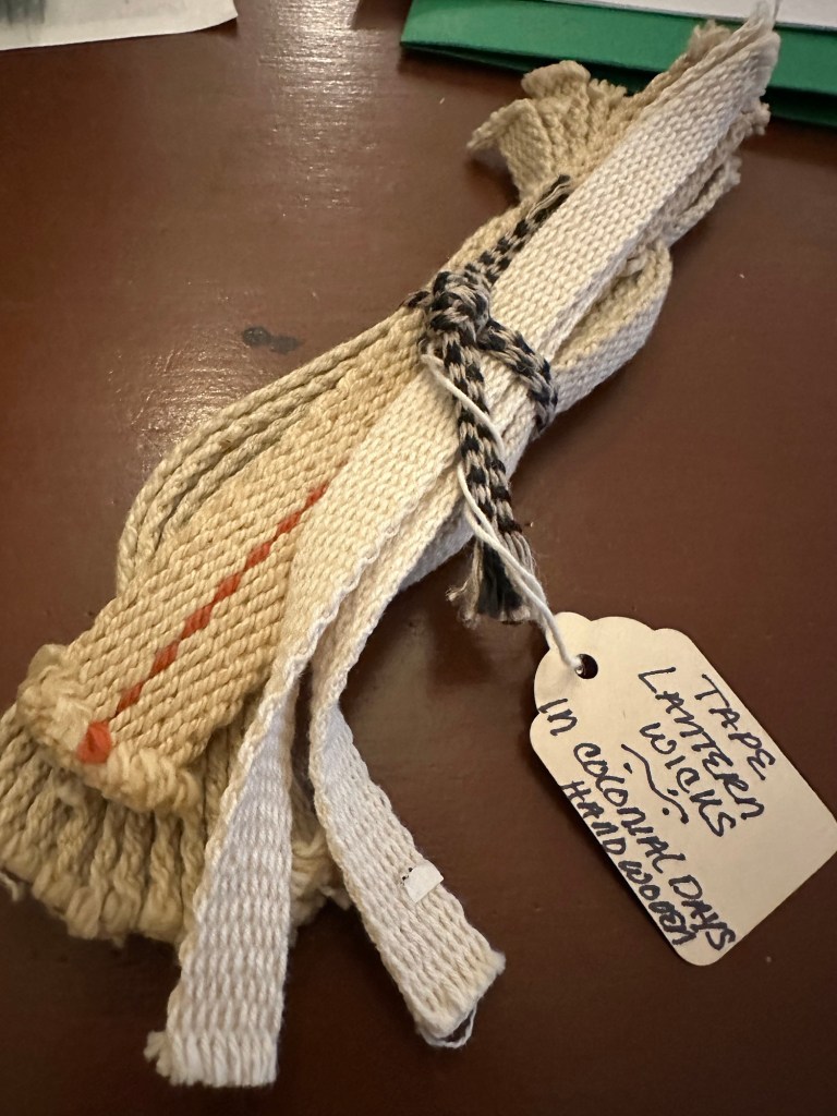 Tape is basically a handwoven ribbon they’d use in place of commercial ribbon or rope from attaching clothing to making candle wicks.