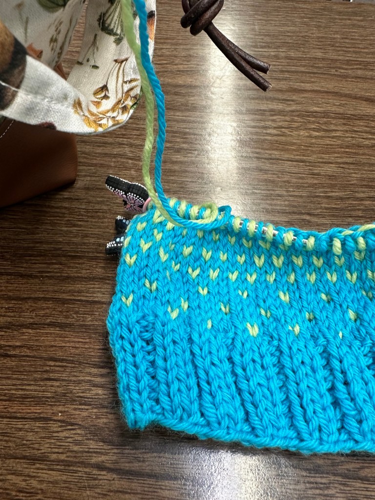 I honestly don’t know I needed a whole three hour class in it but it was nice to get some tips on holding the yarn and how to get started/catch floats. We all got a lot of knitting done on the hat. I’m glad I took the class because I didn’t think I would have tried it on my own.