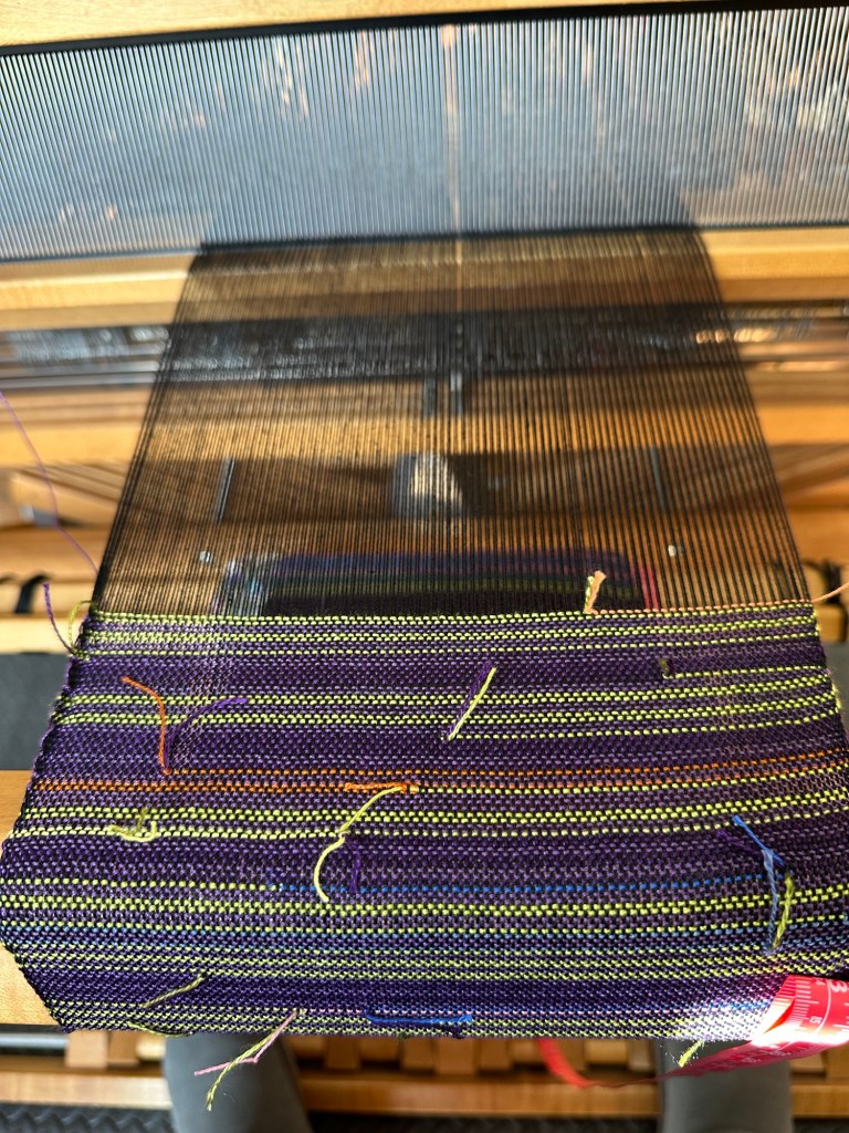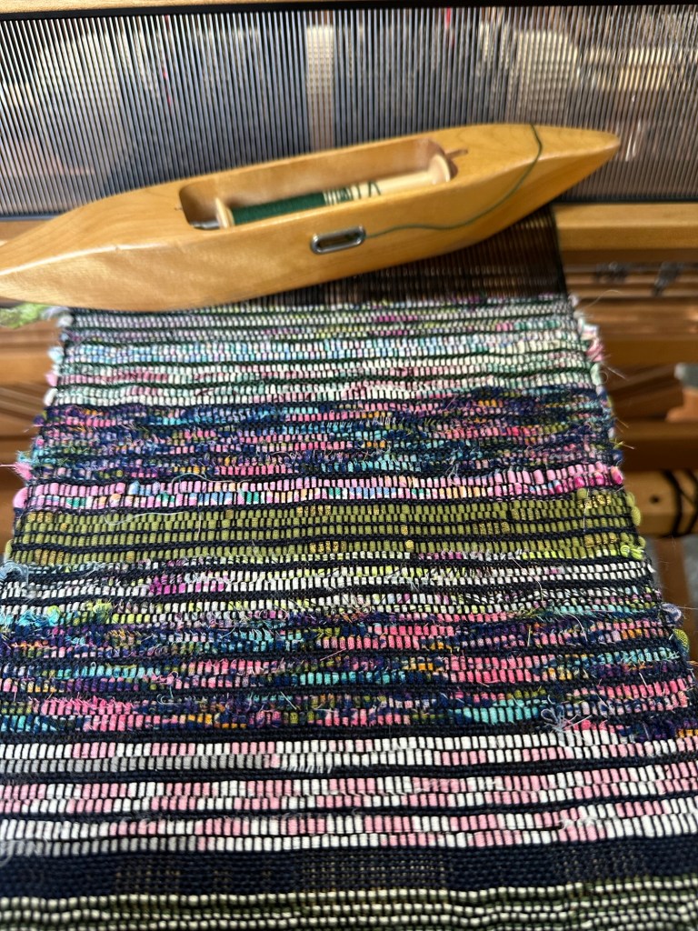 My guild helped out with the scrap warp and I bought a big lot of silk and fake silk scarves on eBay to use as weft.