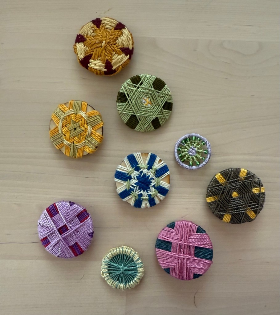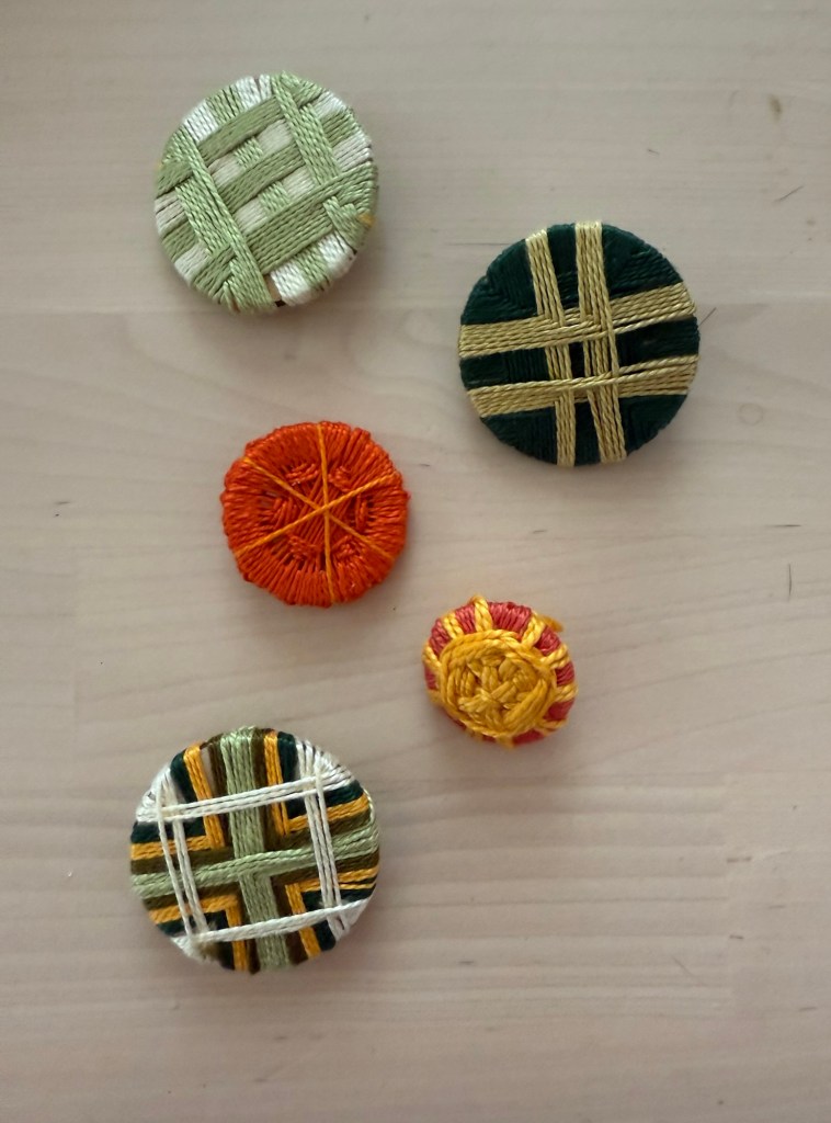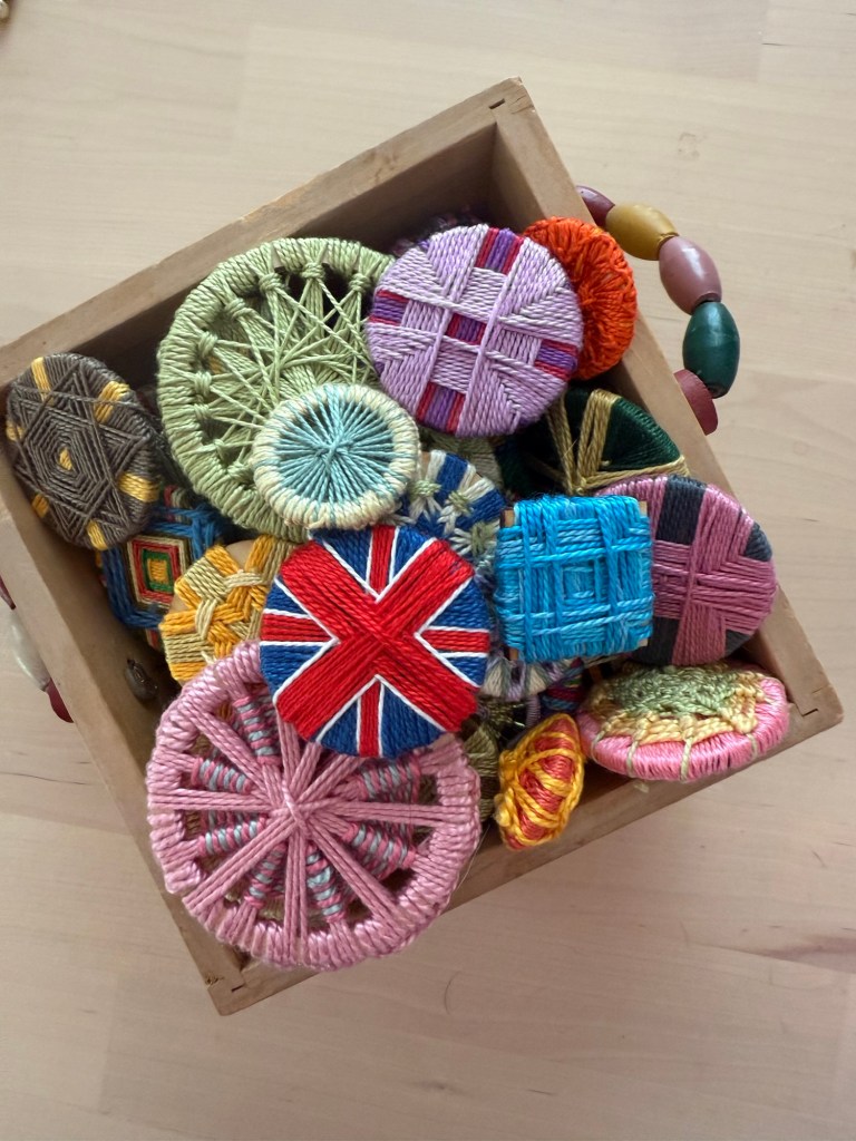 I’ve been taking a class on button making since September and we had our final class last week!! I’m waiting for my certificate but we made 100 buttons. It’s based on a German program but we also did a few British buttons and some other types.