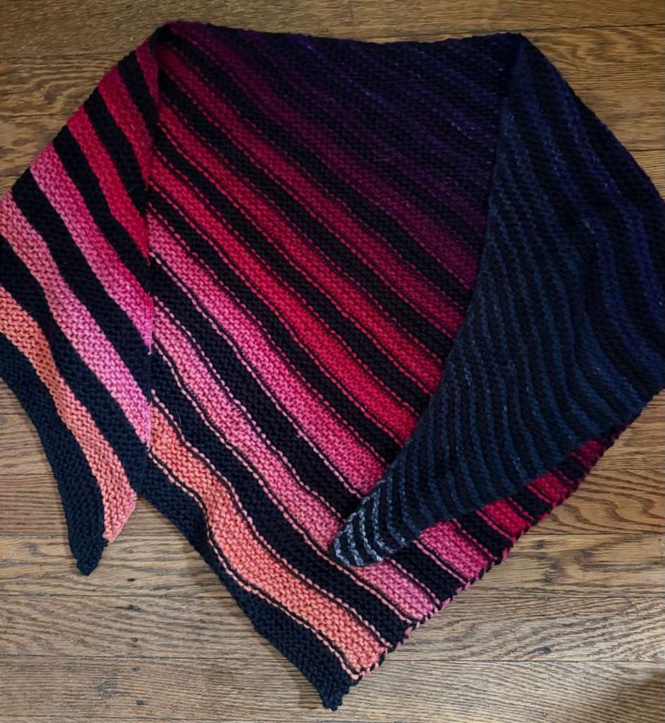 I learned from the last one and started from the color side I liked the most and I ended up not using any of the very end which was a pukey yellow pink*. My husband jokingly calls it the goth version. I like it a lot, I love jewel tones. I think you can see the gradient a little better with this one even though the contrast isn’t as stark on the narrower stripes.