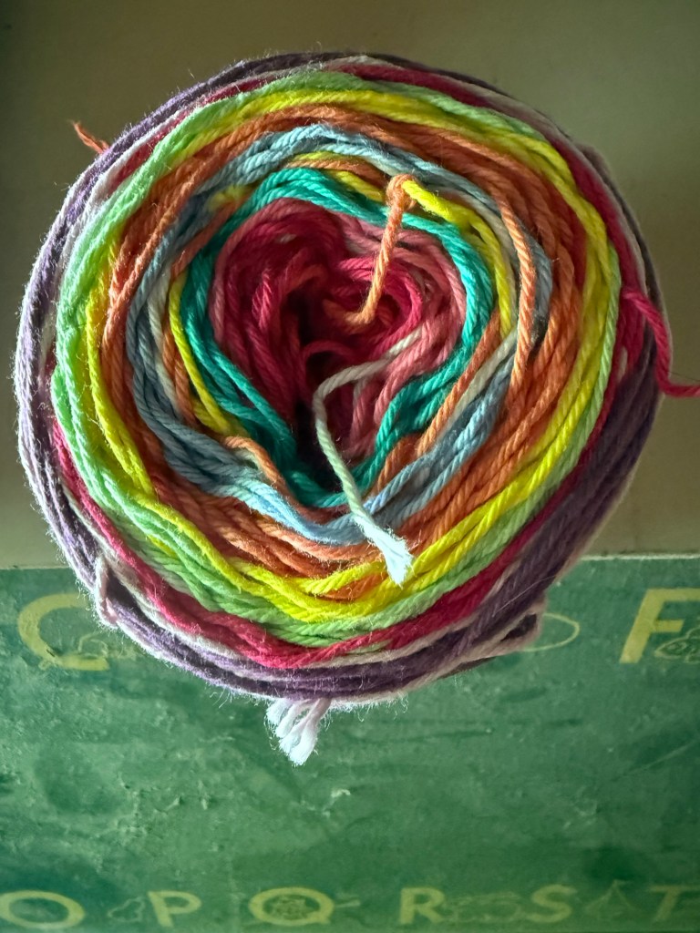 I had a lot of scraps off the weft left and I tied them together and used the ball winder to make a cake.