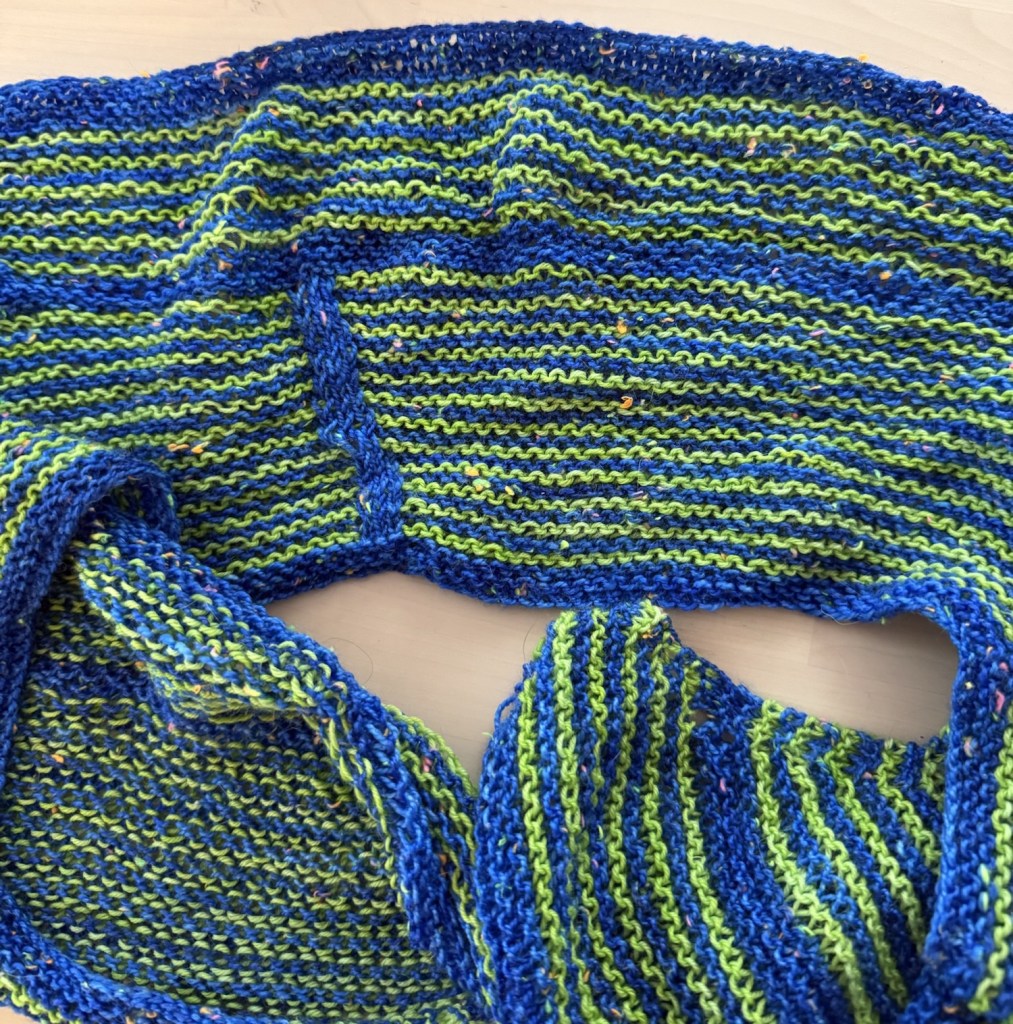 I also stopped this Stephen West pattern early after ending the Boneyard Shawl early. It is super long and making it the width called for in the pattern would have made it too wide to be a scarf (at least without folding it over and obscuring the design) yet too narrow to really be called a shawl.
